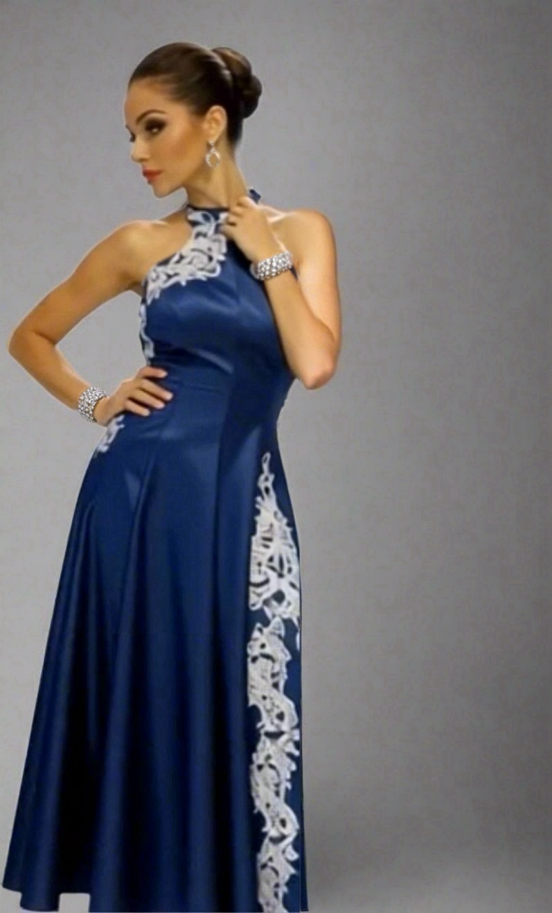 Step into a world of elegance and enchantment with the stunning "Indigo Dream". This exquisite piece captures the essence of sophistication, adorned n a rich indigo hue that shimmers with every movement. The delicate white rhinestone details cascade gracefully, adding a touch of whimsy to your silhouette. Whether you're dancing the night away or gracing a special event,